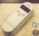 The device has a standard test foot of 1" diameter chrome plated metal. This can be unscrewed with a special tool to allow the use of other sensor feet. The machine has a rubber foot which is a hemisphere. The machine comes with shims to raise the height of the unit to accommodate the height of sensors. The small movements of the sensor make this machine very tricky to use on all but the smoothest, most regular, and uniform surfaces.
